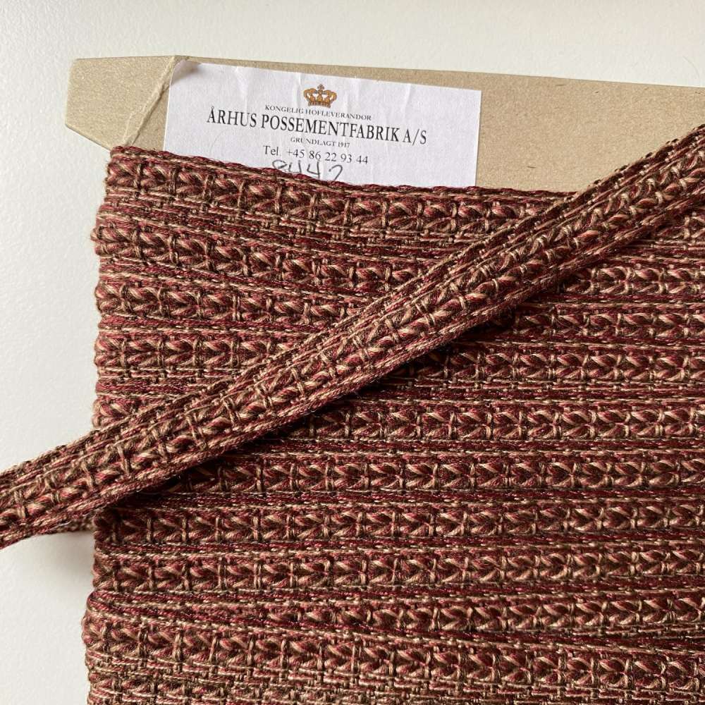 Kun få meter igjen. Pyntebånd til møbler fra annerkjente Århus Possementfabrik – husk at farger gjengis meget forskjellig på skjermer