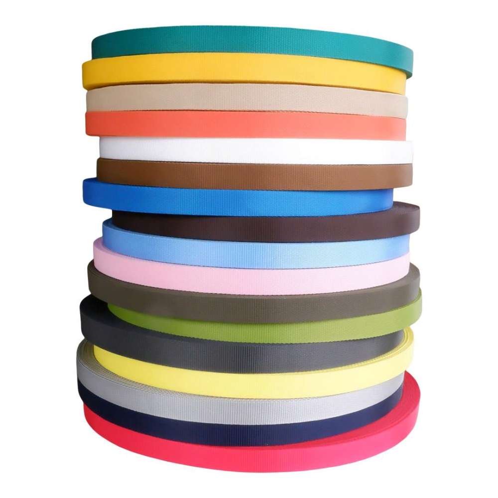 Syntetisk vevet flatt PP bånd i 100% Polypropylen. Andre benenvelser er Nylongjord, Gjordebånd, Webbing