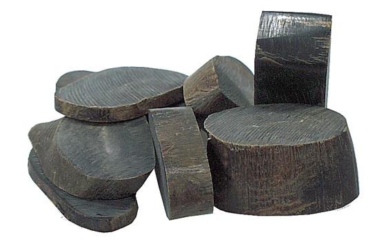 Skiver i bøffelhorn, som brukes av knivmakere til innlegg i skaft, holk eller til smykker og annen hobby