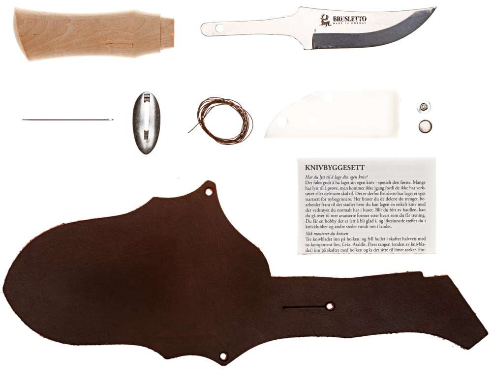 Følger med oppskriftshefte med fremgangsmåte for å bygge kniven.