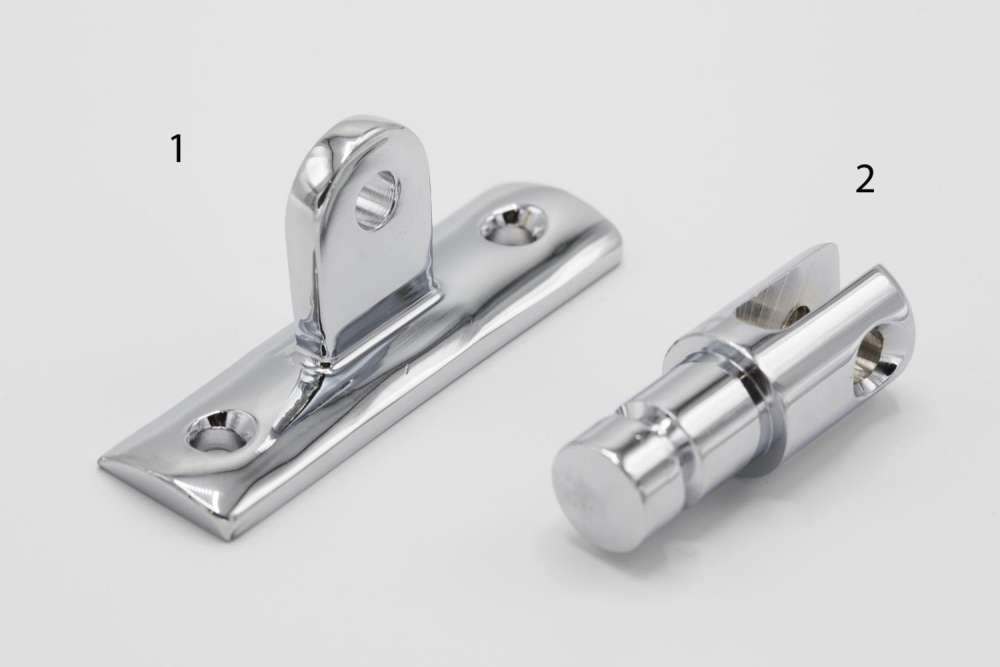 Dekksplate i forniklet messing. Brukes sammen med gaffelbolt artikkelnr. 6410 og artikkelnr. 6411.