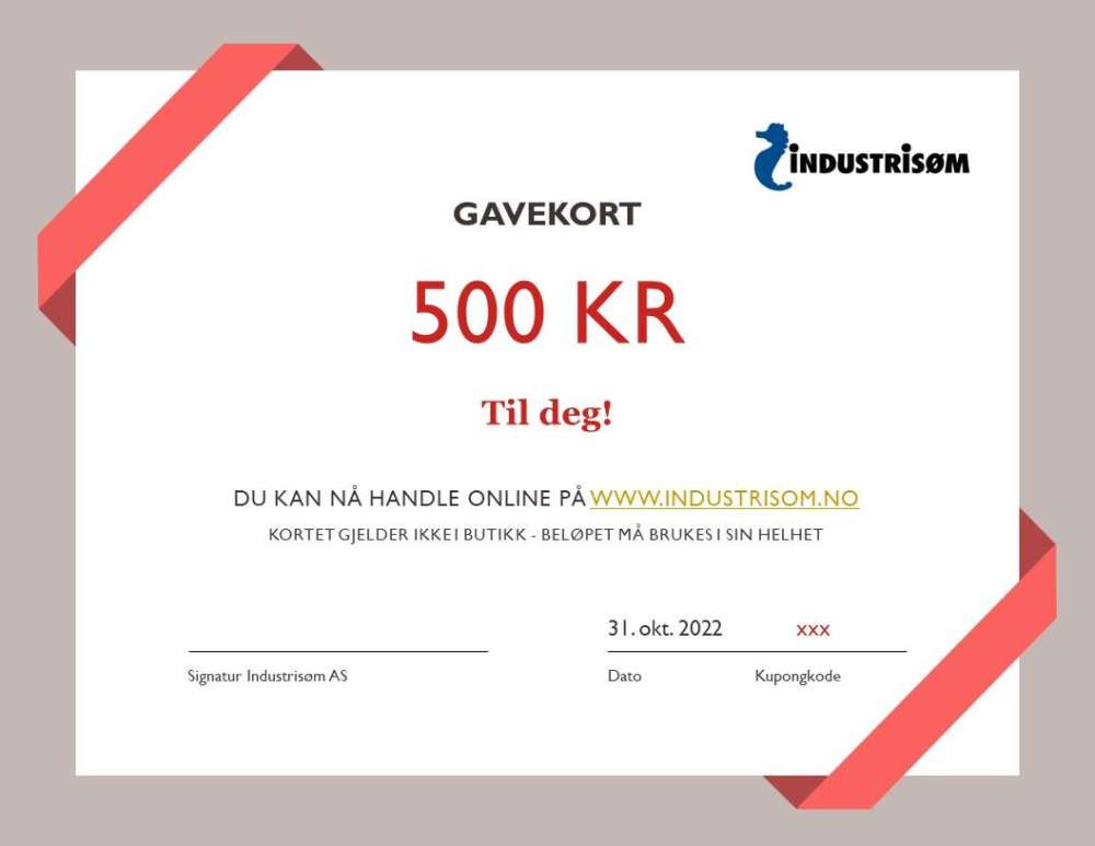 Den heldige mottakeren av gavekortet går til www.industrisom.no og velger ønskede produkter