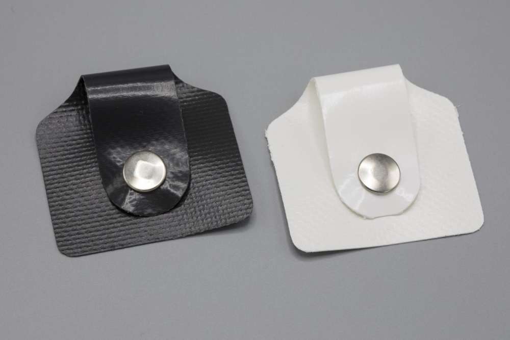 For å feste kalesjestropper eller kalesjestrikk til kalesjen, syes denne på kalesjen slik at kalesjestroppen eller strikken kan lett settes på med trykknapp som er ferdig påmontert.