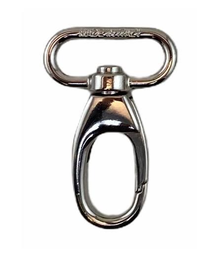 Den ovale formen giver karabinkroken ett stilfullt uttryk. Øyeledet er dreielig og sikrer fleksibilitet, mens den klassiske fjederlås gjør åpning og lukning både enkel og praktisk.