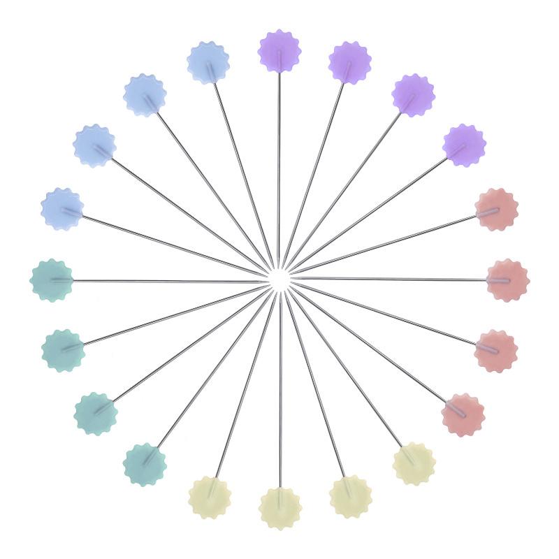 Flotte og søte knappenåler med et flatt blomsterhode, som gjør disse perfekte for patchwork og quilting når du syr sammen flere lag.