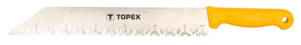 Kniv for mineralull,hard fast skum og polystyren 480mm, blad 335mm, metrisk skala på blad. Ergonomisk håndtak laget av hard plast.