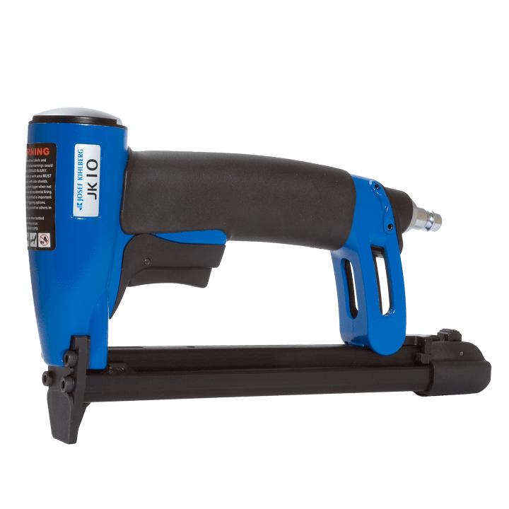 Krampepistol JK10-670 er et ergonomisk utformet verktøy med en lang smal nese og et magasin som lastes nedenfra. Et pålitelig og robust verktøy som krever minimal service. Brukes til ulike typer arbeid med møbeltrekk og til stifting av trefiberplater, paller og plastmaterialer.