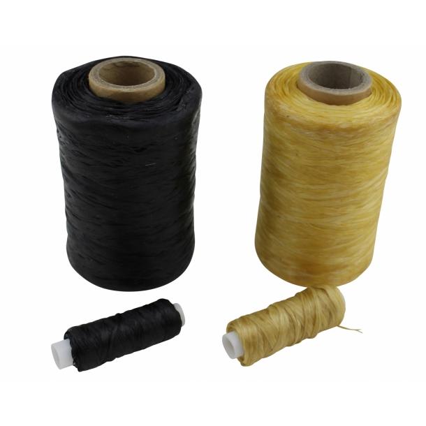 Tråden er flat. Den kan tvinnes og bli rund, eller splittes for å få den tynnere. Farge: Natur/Gylden eller Svart