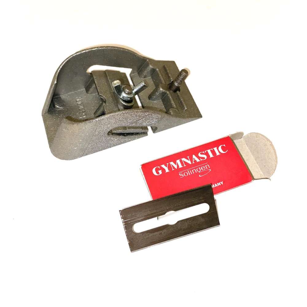 Lærhøvel med 5 utskiftbare blader – perfekt for presis trimming og jevning av lærkanter.