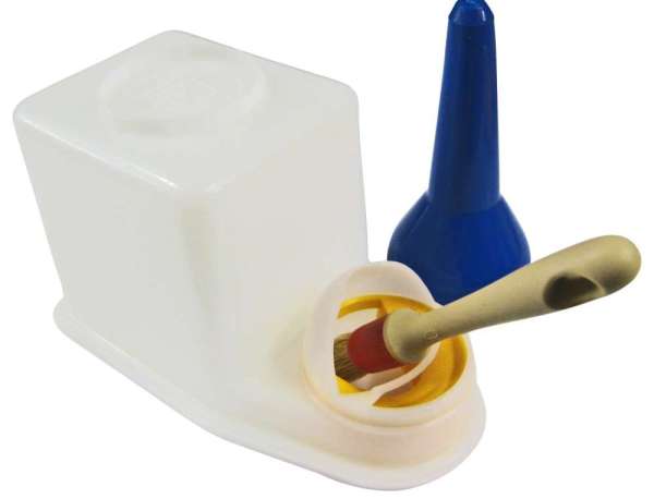 Til oppbevaring av lim og kost. Den har plass for å fylle lim, og plass til børste/pensel. Beholderen er helt lufttett, kosten er alltid klar og blir ikke tørr.