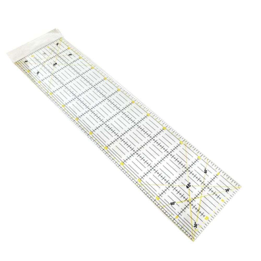 Flott og stor linjal for arbeid med tekstil og søm. Den er laget for quilting, og har streker og mål for å hjelpe deg med rask oppmåling i ditt arbeid.