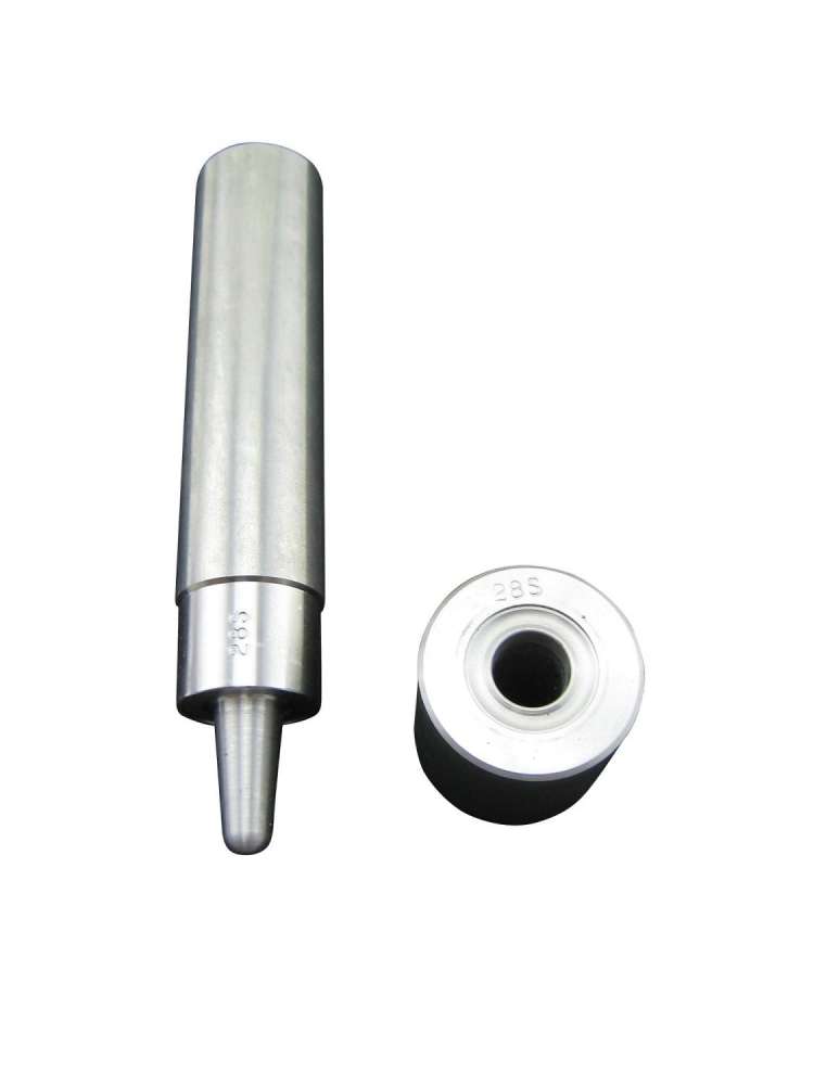 Håndverktøy i 2 deler for å slå sammen de to delene. Dette er for profesjonell bruk. Treklubbe, plasthammer eller råhudsklubbe for å slå med, ikke hammer av stål da det ødelegger hørsel og verktøy. Brukes til produksjon av levegger, kalesjer, telt med mer. Huggepipe/Hullpipe benyttes først for å lage hull. Illustrasjonsbilde viser en annen størrelse av samme verktøy.