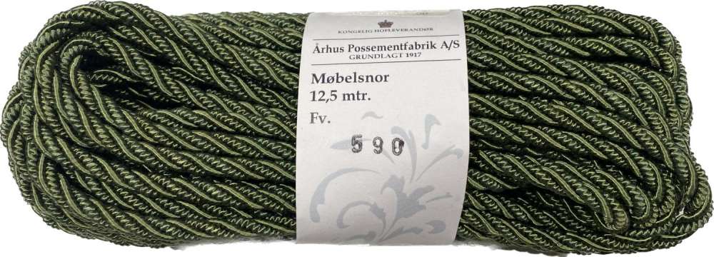 Møbelsnor til møbeltapetsering. Denne pyntesnoren er fra laget hos Århus Possementfabrik AS i Danmark.
