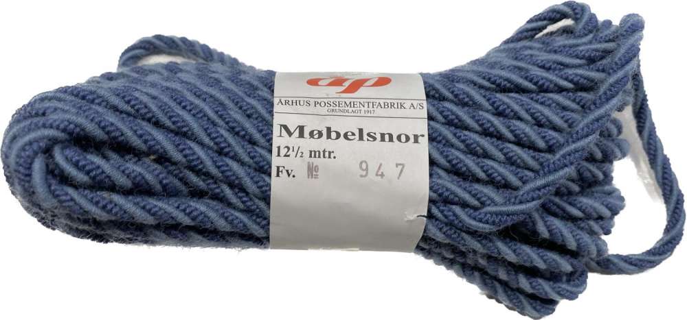 Møbelsnor til møbeltapetsering. Denne pyntesnoren er fra laget hos Århus Possementfabrik AS i Danmark.