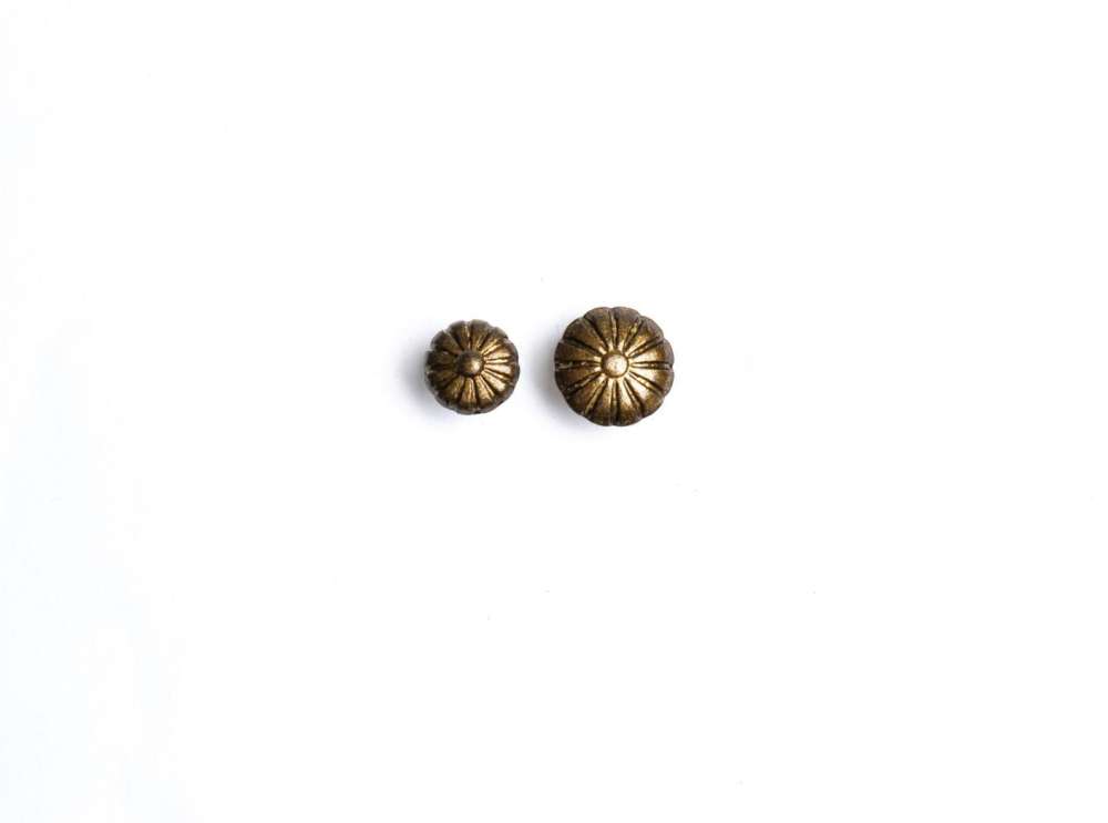Blomsterpreget, flat dekorativ møbelspiker for møbler etc. i fargen gammel messing