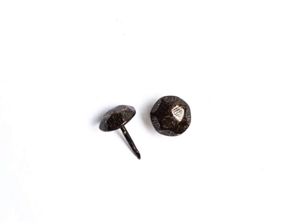 Møbelspiker/pyntespiker for møbler med en kantet design etc. i fargen gammel messing flekket