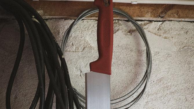Det 1,0 mm tykke karbonstålbladet i SPRING C75 QT gir styrke, stabilitet og lang levetid, og kan enkelt slipes opp igjen etter behov. Det ergonomiske polymerhåndtaket er utstyrt med et solid fingerskydd som gir trygg og komfortabel bruk, selv ved lengre arbeidsøkter. Kniven leveres med en polymer kantbeskytter som sikrer trygg oppbevaring og transport