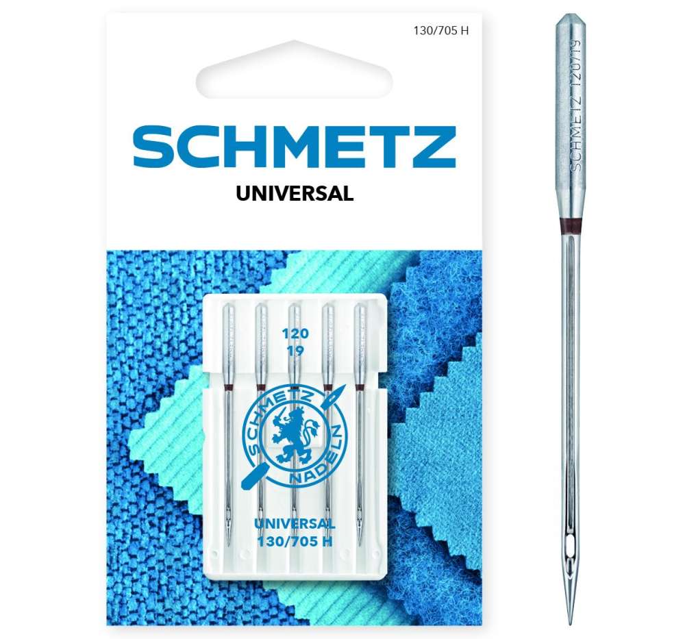 Schmetz Universal 130/705 H symaskinnåler er allsidige nåler designet for både vevde og strikkede stoffer. De har en lett avrundet spiss som gjør dem egnet for en rekke materialer. Nålesystemet 130/705 H betyr at de passer til husholdningssymaskiner og har et flatt skaft for korrekt posisjonering