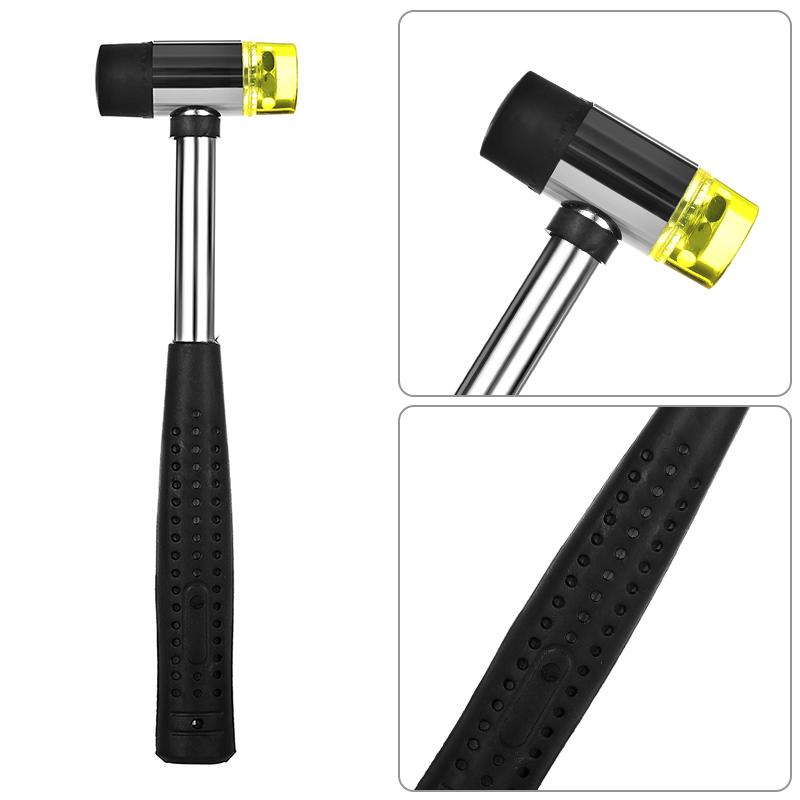 Plast/gummihammer for arbeid med møbler og omtrekking, samt lær, skinn og punselarbeide. Plast/gummi på hver side beskytter materialer ved montering og demontering ved arbeid med møbler. Ved arbeid med lær og skinn er det viktig å unngå å slå stål mot stål, da ødelegges punsler og hullpiper.