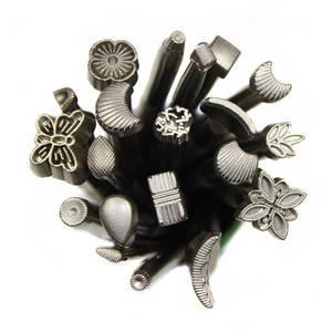 Sett med 20 stk punsler til å lage mønster i lær og skinn. Vi anbefaler vegetabilsk garvet lær som fuktes først med vann for ekstra godt resultat. Husk å bruke en nylon eller råhudshammer til dette. Eventuelt plast eller trehammer kan også brukes.