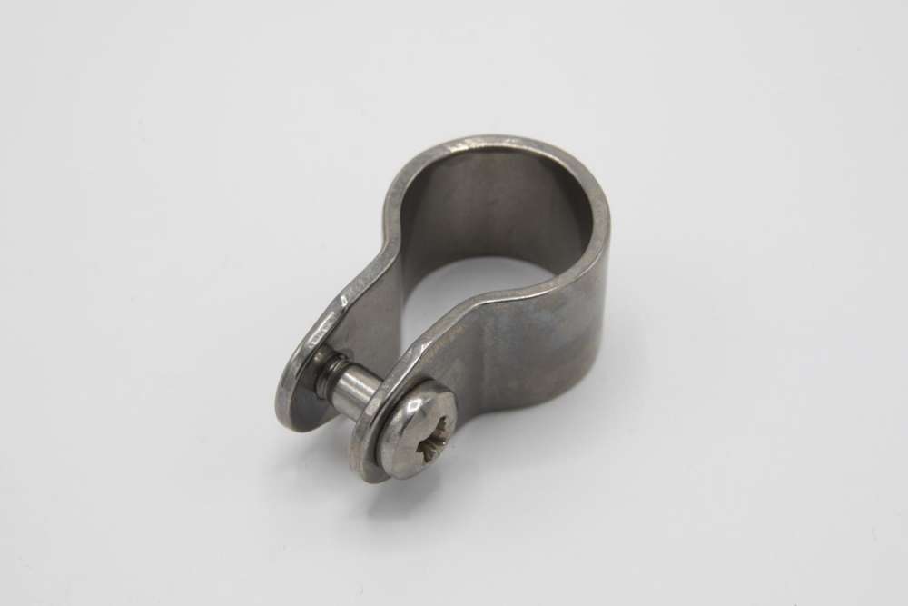 Rørklemme 7010 i rustfritt stål, AISI 316. Monteres sammen med endeplugg artikkelnr. 716 og 7017. Klemmes rundt 22 mm rør, atikkelnr. 6379, 6382, 6383 og 6385.