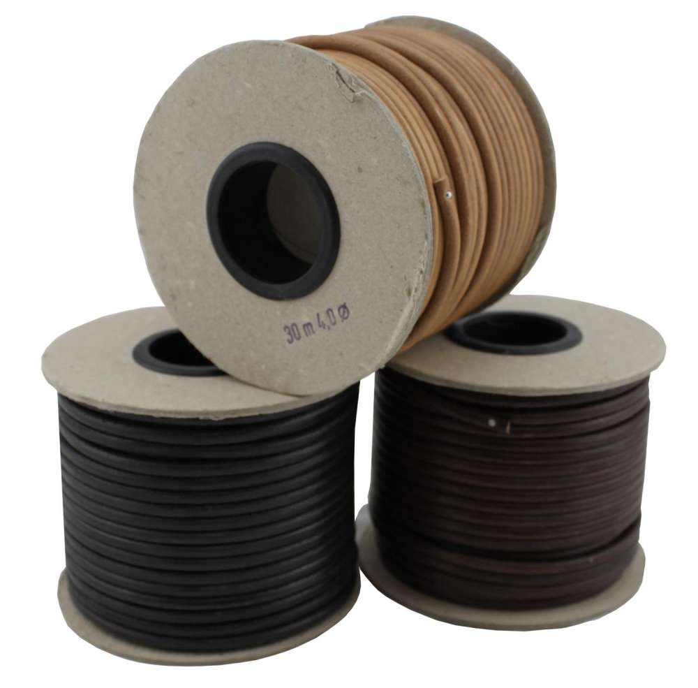 Rundskåret lærsnor 5mm 30meter