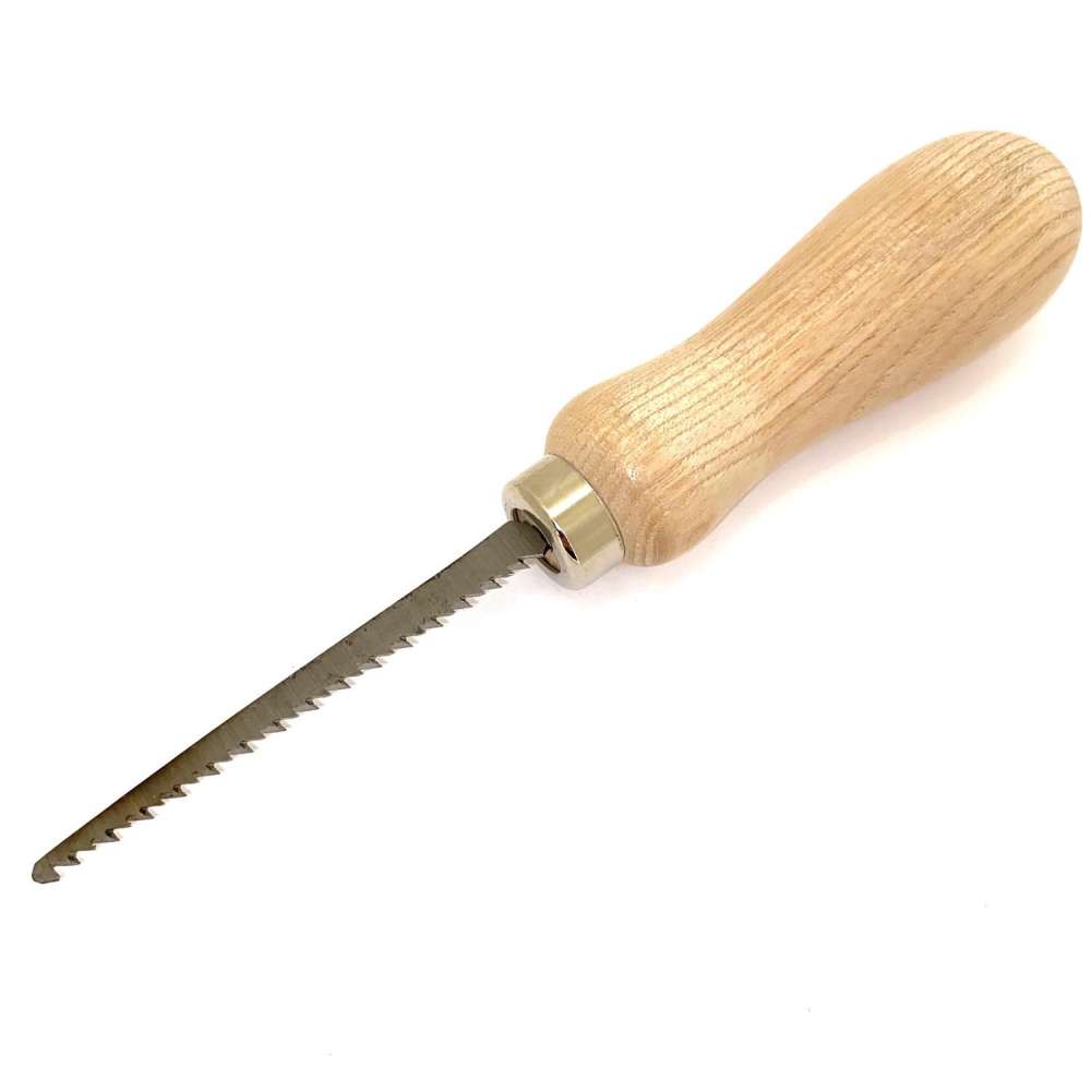 En skikkelig god og kraftig tangerasp / tagesag. Denne er norskprodusert med et flott treskaft og holk i metall. Når du har boret hull med et langt bor 102077 i skaftet kan denne sage raskt opp hullet før du skal til med filen 100550 for å tilpasse til tangen på knivbladet.