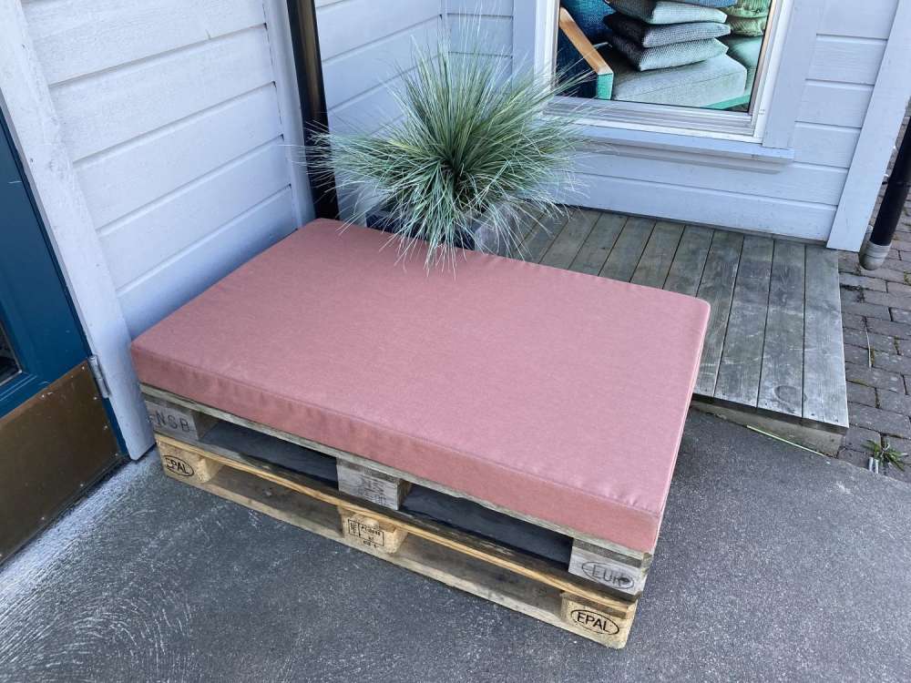Avbildet modell har stått utenfor fra påske til høst i 4-5 år. Har kun blitt regnvasket mange tiltalls ganger. Det har avtagbart vasktbart trekk. Et vannavvisende utestoff som har høy lysekthet for å tåle mye sol, og er laget av acryl som ikke holder på fuktighet. Vi har stort utvalg.
