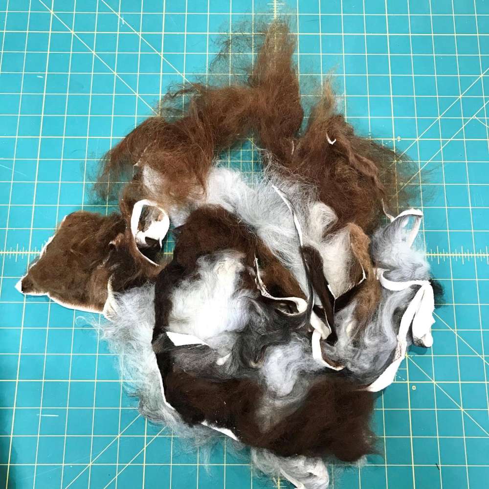 Skinnrester i pose. Her er mange små biter, men også biter som er litt større. Lag nisser, troll eller nøkkelring med pels på. Skjegg, bart, hår eller annet på figurer. Her er det åpent for kreativitet. Hobby med lær skinn og tre er kjempegøy. Julenisse eller movember-bart?
