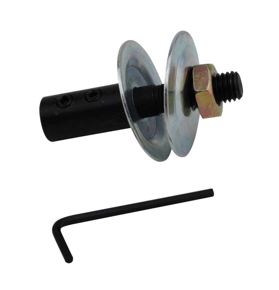 Spindel med mutter for montering av polerskiver og tøyskiver, et tilbehør for Trym5 Poleringsmaskin. Poleringsmaskin må kjøpes seperat. Gir sikker og stabil rotasjon under bruk.