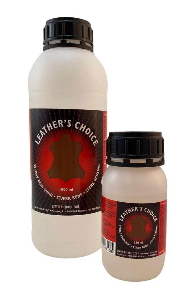 Kraftig skinnrens – Denne kraftige lærrensen fra Leather’s Choice fjerner effektivt smuss og fett fra skinnoverflater. Etter rengjøring kan du male eller farge læret – for eksempel med lærfarge Quick Color Dye, dekkfarge eller for enda bedre innfarging med Narvsverte