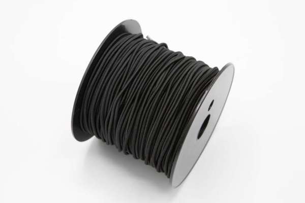 Rund sort strikk av god kvalitet i polyester. Noe slakkere enn gummiline på 3mm vi også har i sortimentet.