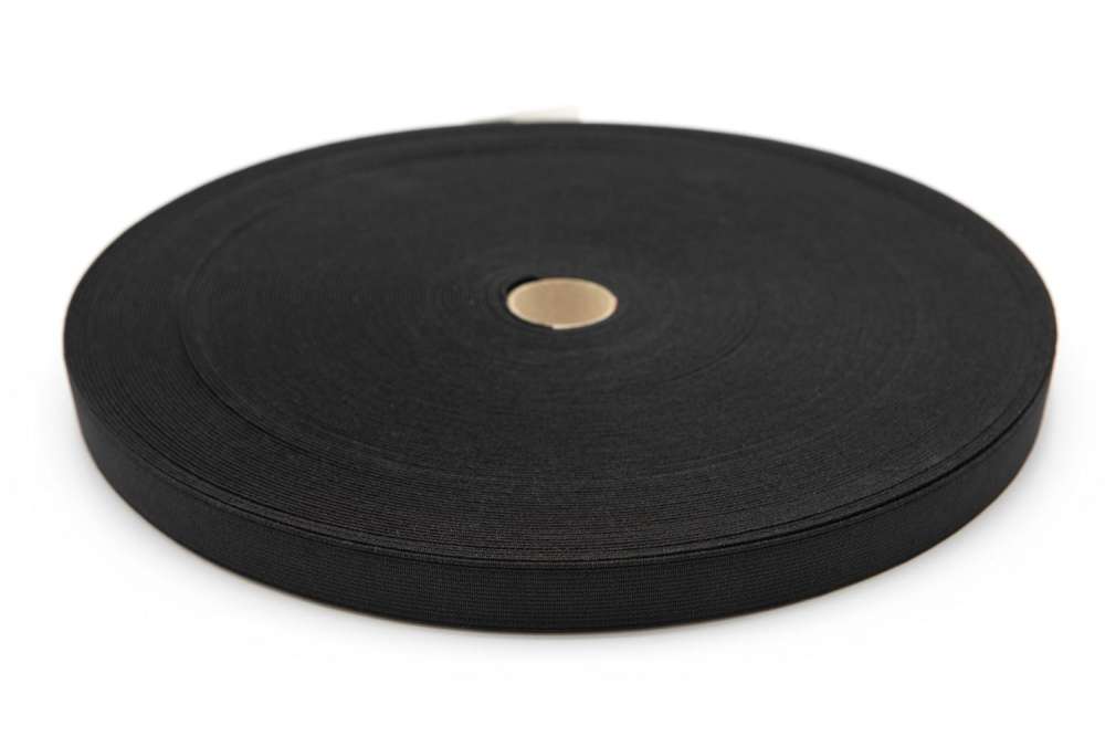 Strikk flat Ekstra HARD 20mm Sort 50m RULL