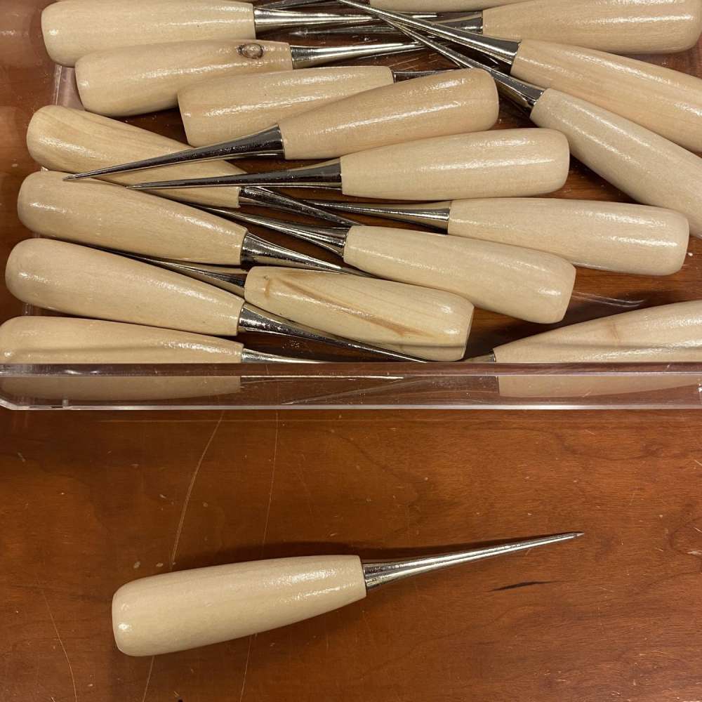 Poleringssyl – lager hull i skinn og lær, den er kon og god når du ønsker å utvide et hull eller polere fibrene i hull i lær og skinn. Det gir penere finish og bedre styrke. Skaft i lakkert tre.