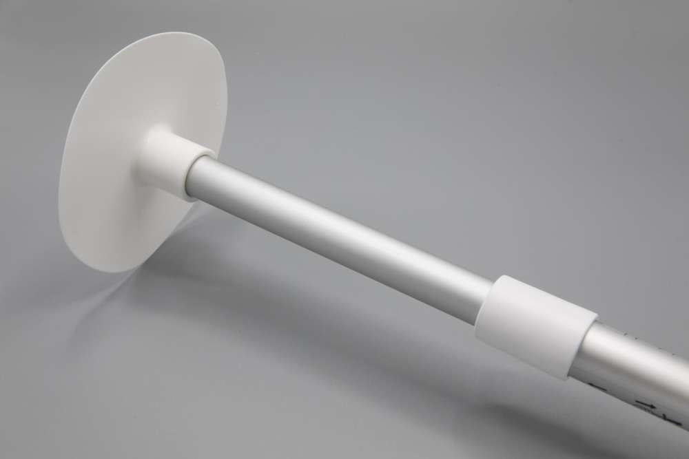 Teleskopisk stang som kan justers i lengden. Den hvite “koppen” eller “tallerkenen” på toppen kan sys fast i kalesjeduken eller bare brukes løs. Slik får du stremmet opp havnepresenningen og unngår vannsamling og skader på både kalesje og båt, samt at PVC-toppen sparer tekstilen for mye slitasje sammenlignet med andre enklere løsninger for havnekalesje.