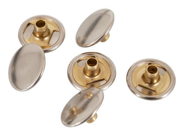 Calott er produsert i messing og etterforniklet, som gir en blank finish. En komplett trykknapp består normalt av fire deler (Calott, Fjær, Kule og Nitte). Calotten slåes eller klemmes sammen med Fjæren, og Kulen med Nitten med et egnet verktøy. Calotten er 15,1 mm Ø og lengden på halsen er 5,5 mm.