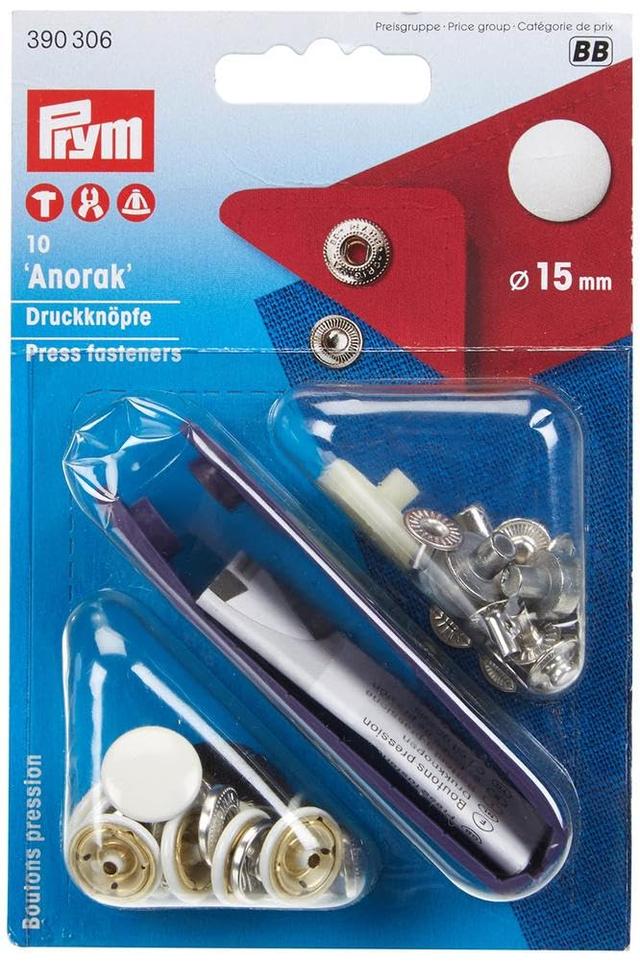 Trykknapp Anorakk Hvit 15mm Sett