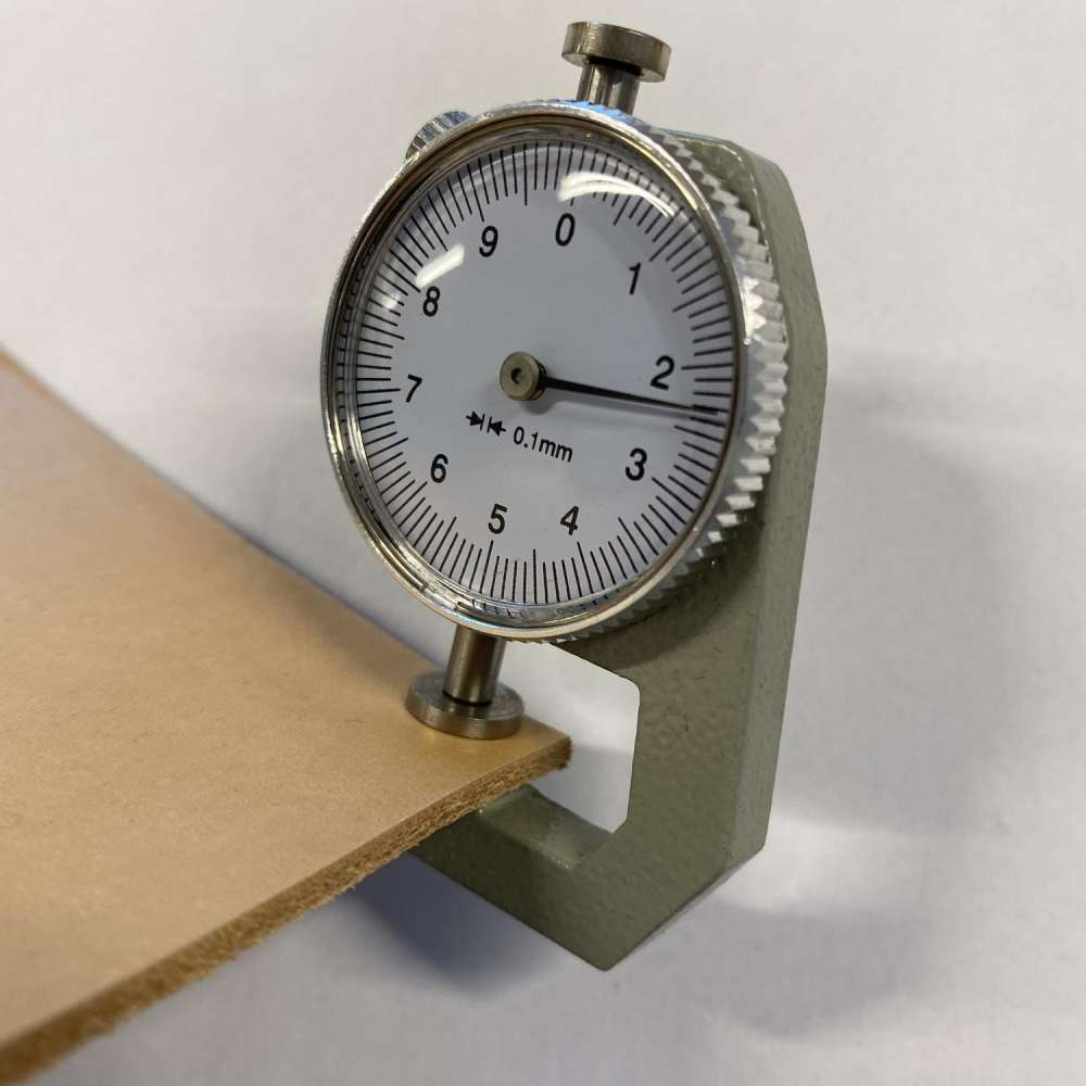 En tykkelsesmåler er hendig verktøy for å måle nøyaktig tykkelse på lær, skinn, metaller, kunststoff, skunstskinn, PVC og andre materialer. Tydelig og lettlest måleresultat. Enklere og mer nøyaktig alternativ til skyvelære.