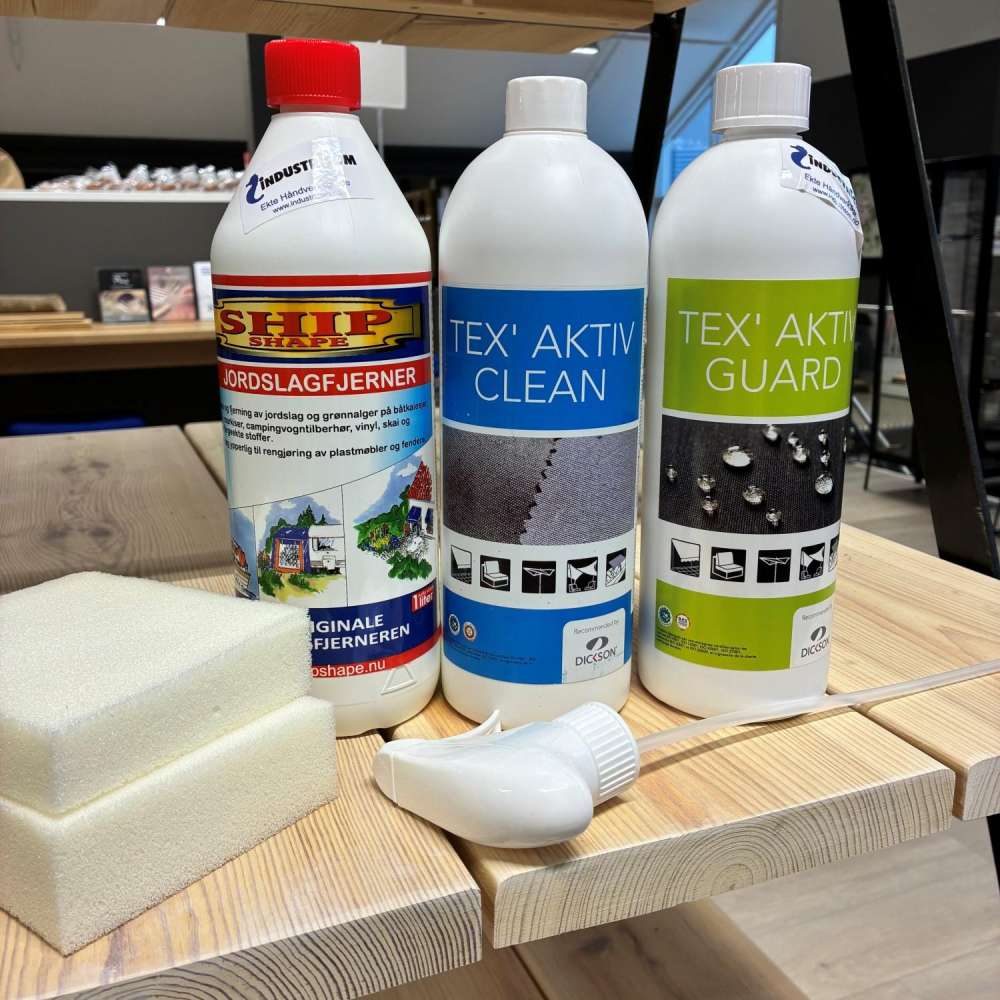 Pakken gir deg riktig produkter til vask, fjerning av jordslag og impregnering, samlet i én praktisk løsning.
